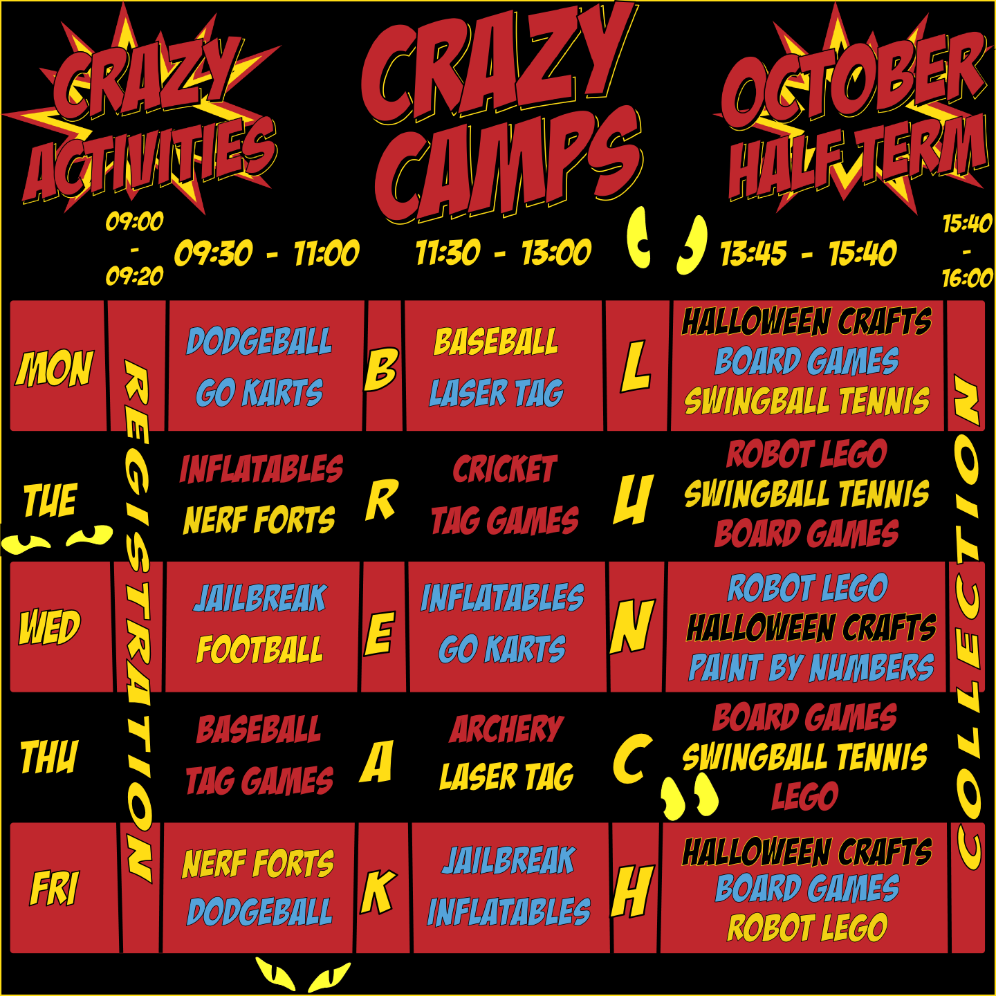 Activities - the times of activities (see below) may vary from the timetable advertised, although each group will get the opportunity to do the activities advertised for that day. We reserve the right to tweak the timetable from time to time, although we make every effort to ensure all groups complete all daily advertised activities.